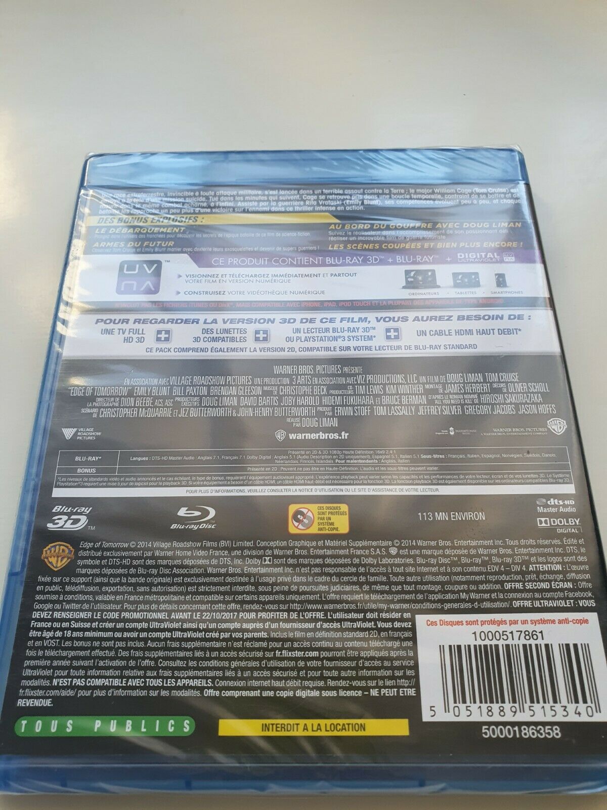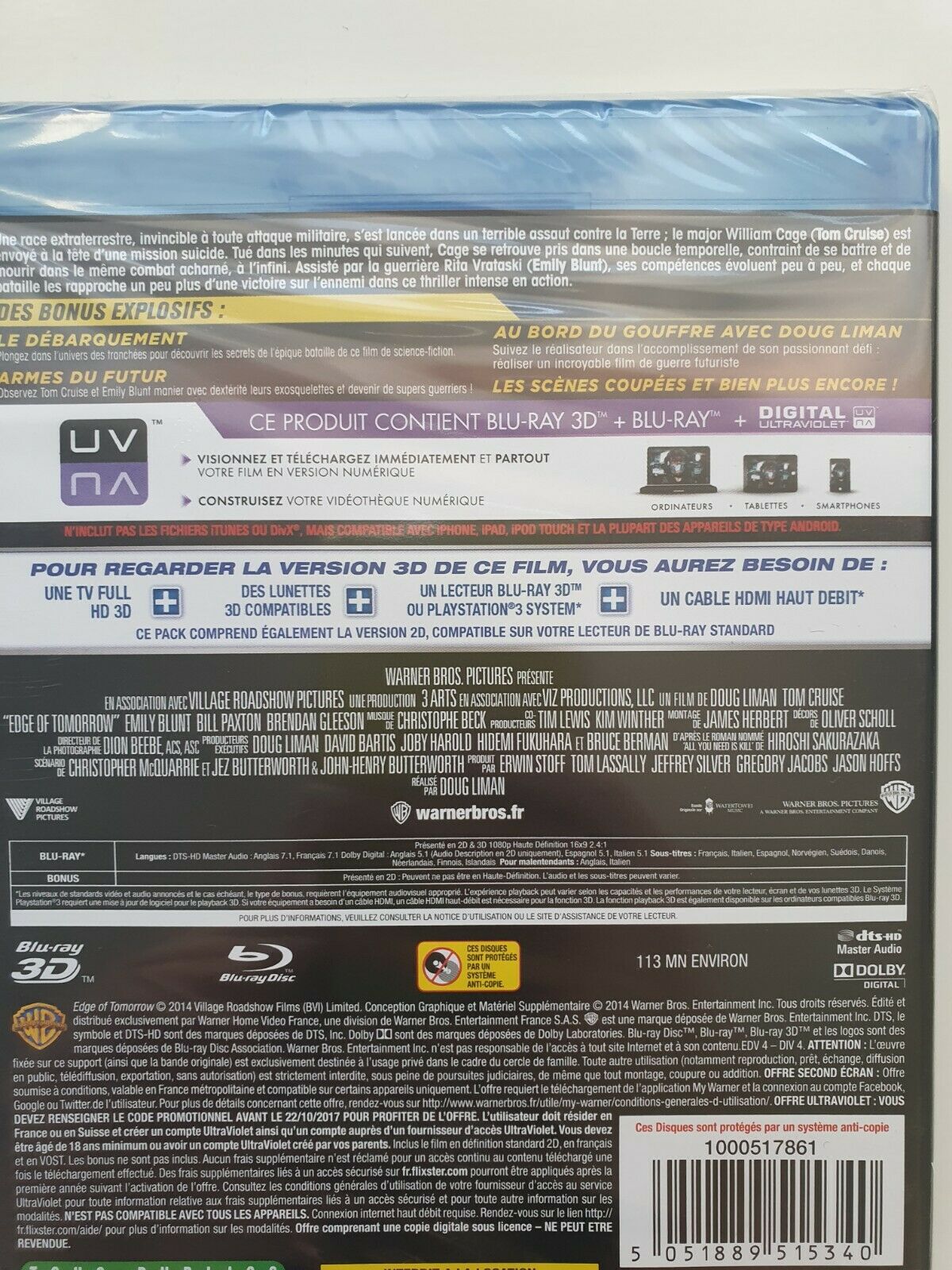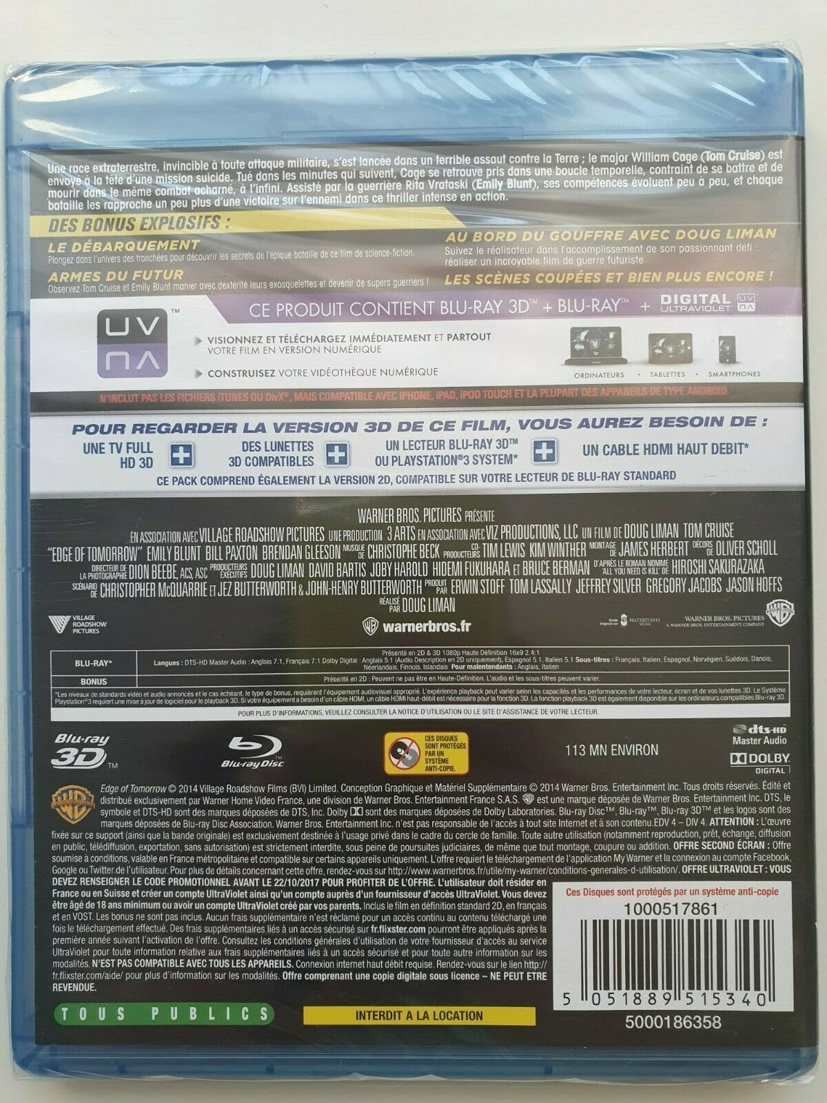 Vivre Mourir Recommencer - Edge of Tomorrow Blu - ray 3D + Blu - ray + Digital Ultraviolet UV